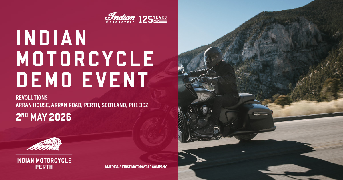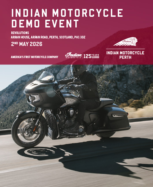 Experience the electrifying power of the all-new MY26 Indian Motorcycle range at this exclusive demo ride event, taking place at Revolutions – Indian Motorcycle Perthshire on Saturday 2nd May.