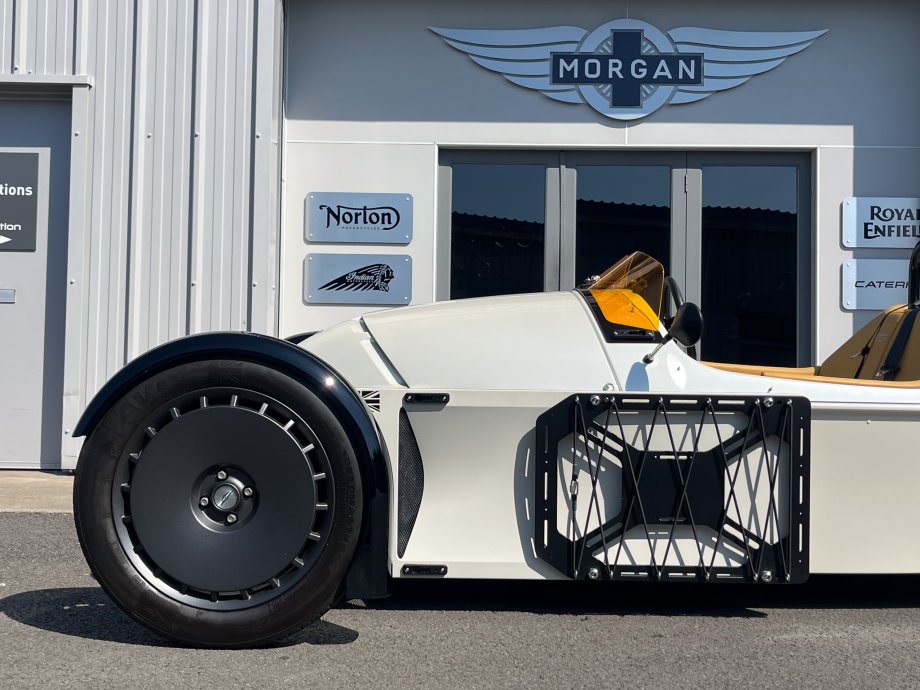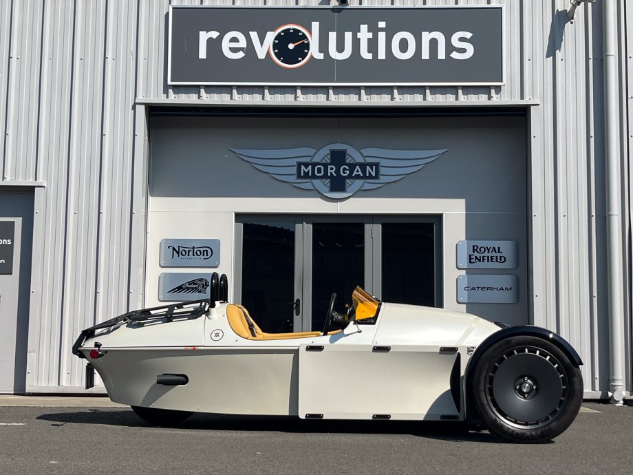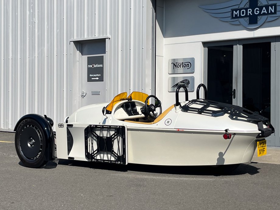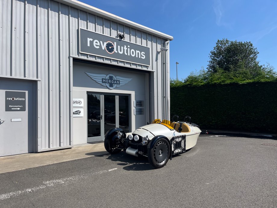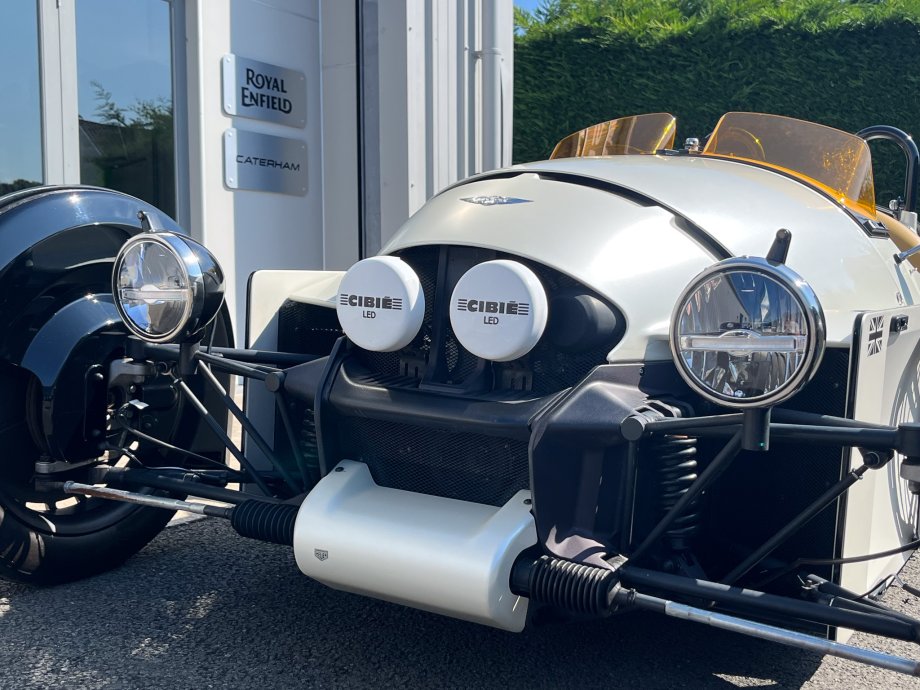 The first Super 3 to drive out of the gates of the Morgan Motor Company as a production sales car, As with every Super 3, this has an amazing colour scheme. Finished in White Pearl paint and Sand Mariner leather, dark castings and graphite grey wheels and a whole list of extras. Registered in March 2023 having now covered just 5150 miles. Supplied new by Revolutions in 2023, with a full service history, we know this car well and are delighted to have it back in stock.