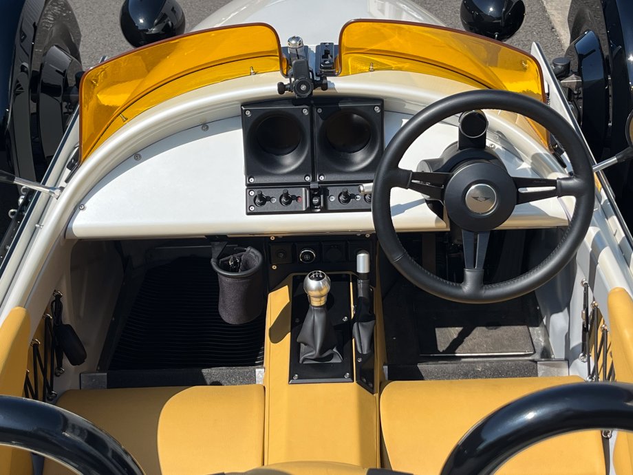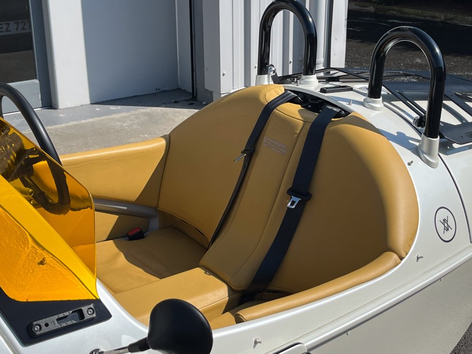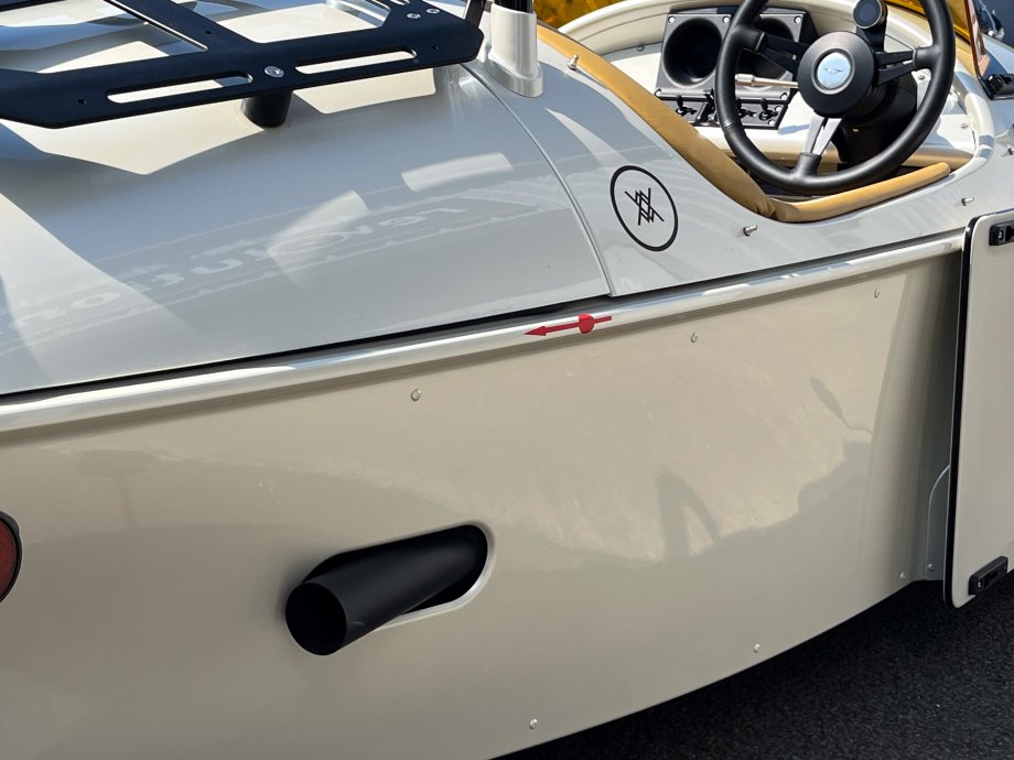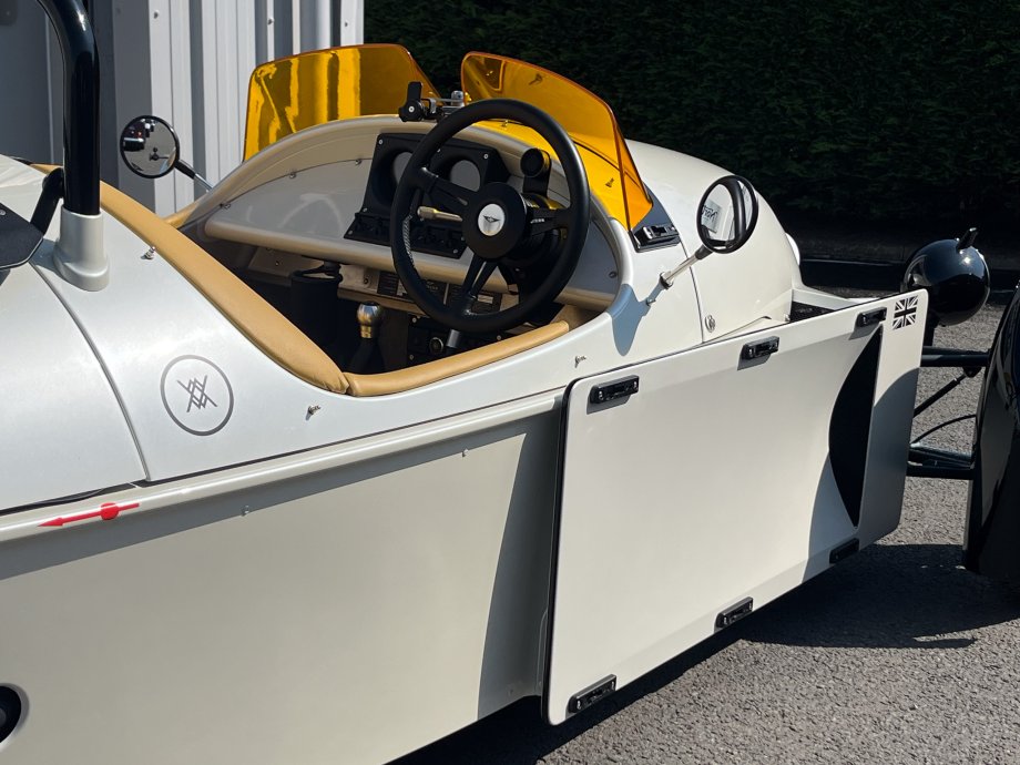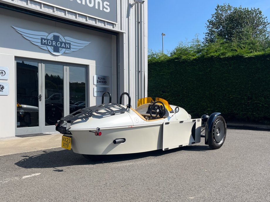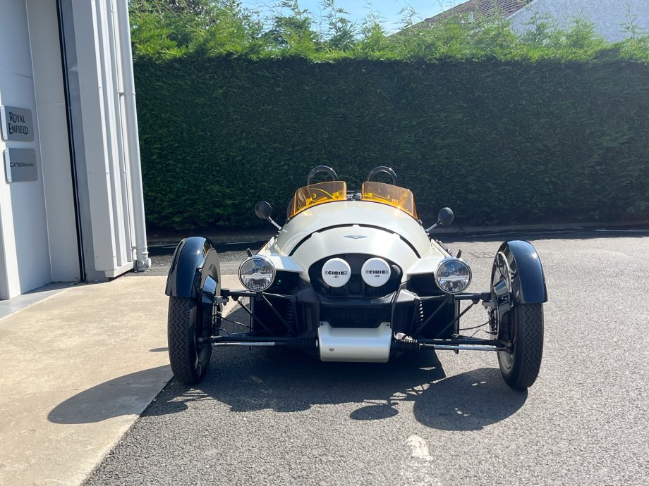 The first Super 3 to drive out of the gates of the Morgan Motor Company as a production sales car, As with every Super 3, this has an amazing colour scheme. Finished in White Pearl paint and Sand Mariner leather, dark castings and graphite grey wheels and a whole list of extras. Registered in March 2023 having now covered just 5150 miles. Supplied new by Revolutions in 2023, with a full service history, we know this car well and are delighted to have it back in stock.