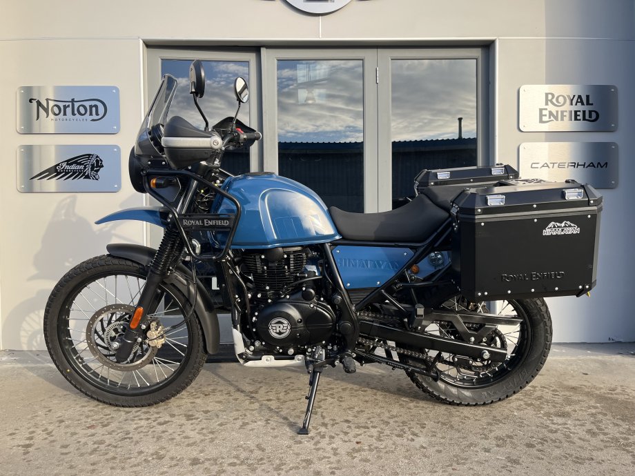 SOLD. Nice, late example of the very well respected 411 Himalayan, that comes with factory fitted pannier rails and panniers. Nice condition throughout. Unusual factory colour. Has had the 1st service carried out and is ready to go ! Please call for part exchange valuation and finance quote.