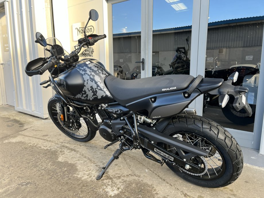 The new Rally 450 Himalayan comes in Mana Black which looks stunning with the one piece Rally seat and seat unit as standard along with the slimmer rear enduro look, Handguards as standard along with the 4 inch TFT screen, Tripper Nav and USB-C charging port.