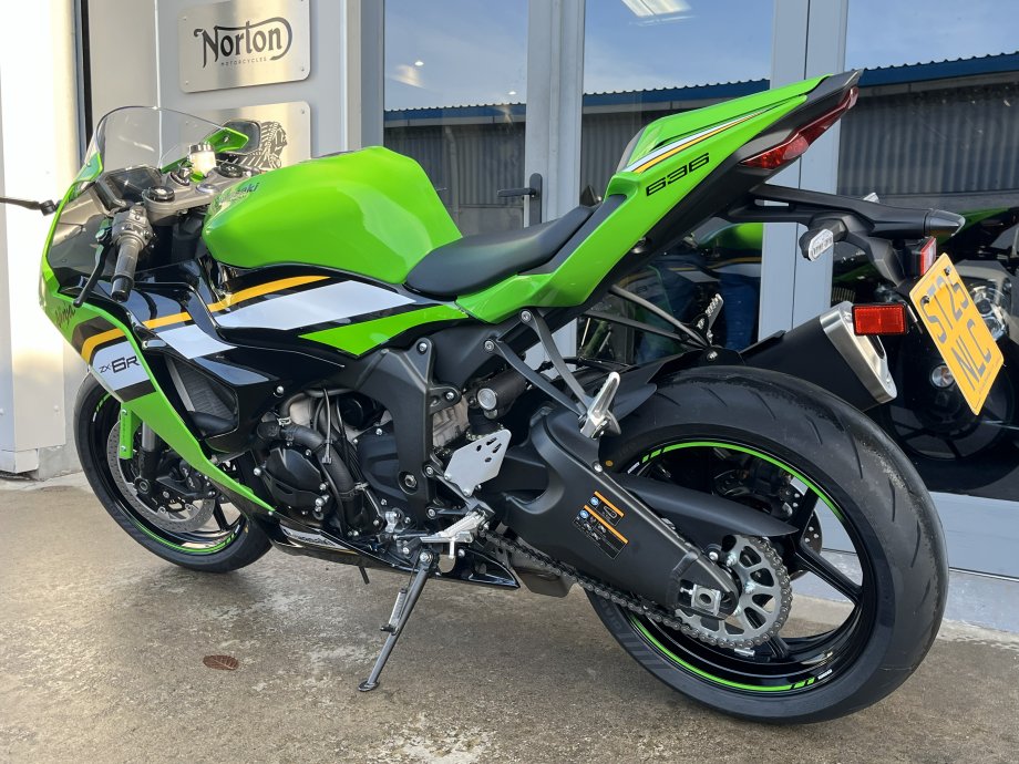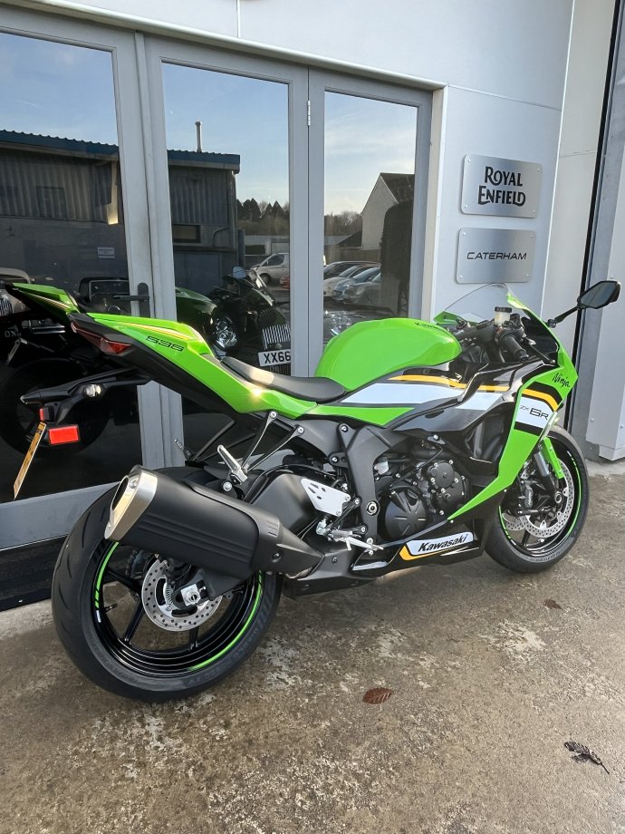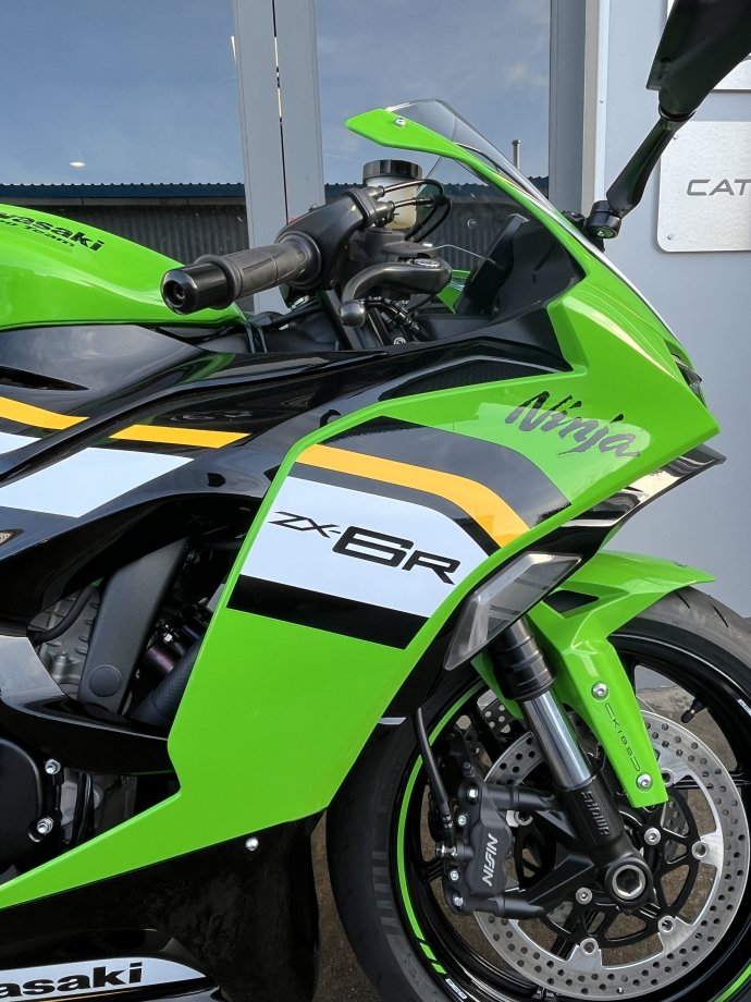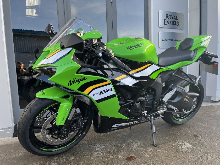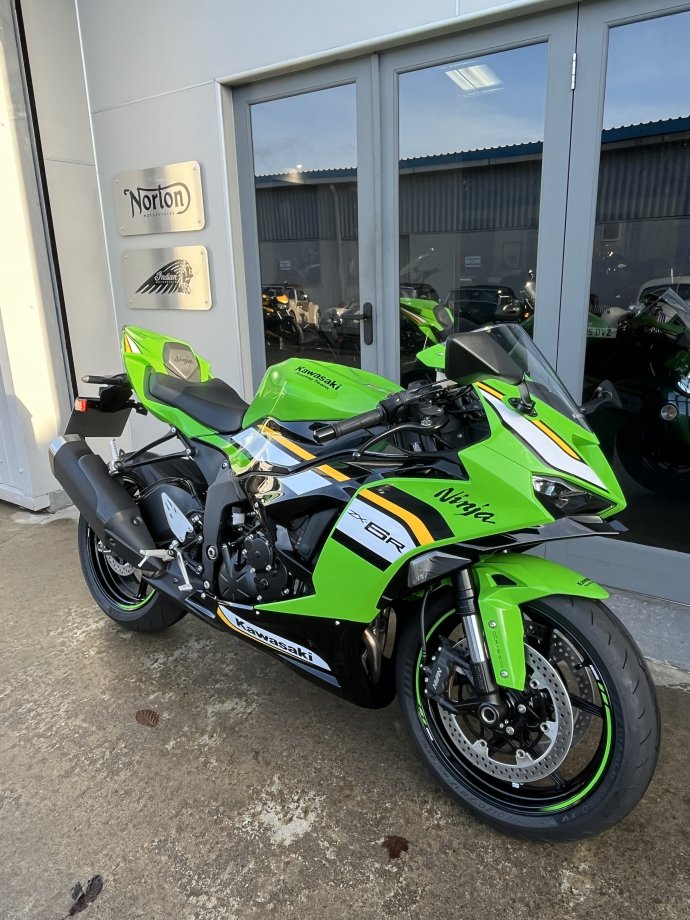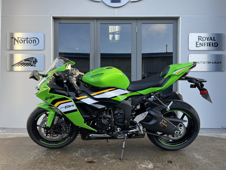 Beautiful bike in Classic Kawasaki Racing Green. Only 47 miles, 1 owner and not a mark on the bike ! The 2025 Kawasaki ZX-6R features a 636cc inline-four engine with a DOHC, 16-valve head, providing a balance of performance and usability. The Ninja ZX-6R was designed to embody superior performance on track, and on the street. The 636 engine ‐ unique to this motorcycle, was engineered to deliver strong and balanced power at all RPM ranges. Electronics that were only previously found on the Ninja ZX-10R and Ninja ZX-10RR such as Power Mode Selector, KTRC, KQS and KIBS, balance out this bike’s race-track worthy power, with street-ready safety! Key specifications include: - 130 BHP , Comes with front Dual semi-floating 310 mm discs. Caliper: dual radial-mount, monobloc, opposed 4-piston. Rear Single 220 mm disc. Caliper: single-bore pin-slide. Suspension - front 41 mm inverted fork (SFF-BP) with rebound and compression damping and spring preload adjustability, and top-out springs. Suspension - rear - Bottom-Link Uni Trak, gas-charged shock with piggyback reservoir. Please call for part exchange valuation and finance quote - 01738 444004. Revolutions - Indian, Royal Enfield, Norton, Morgan & Caterham dealers, come for a coffee & a look!